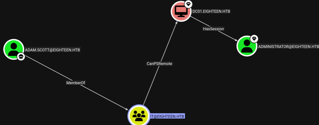 Bloodhound revelead interesting stuff about our user. Part of group IT. We continued looking for all the important stuff and “must” checks but we didn’t get anything interesting.