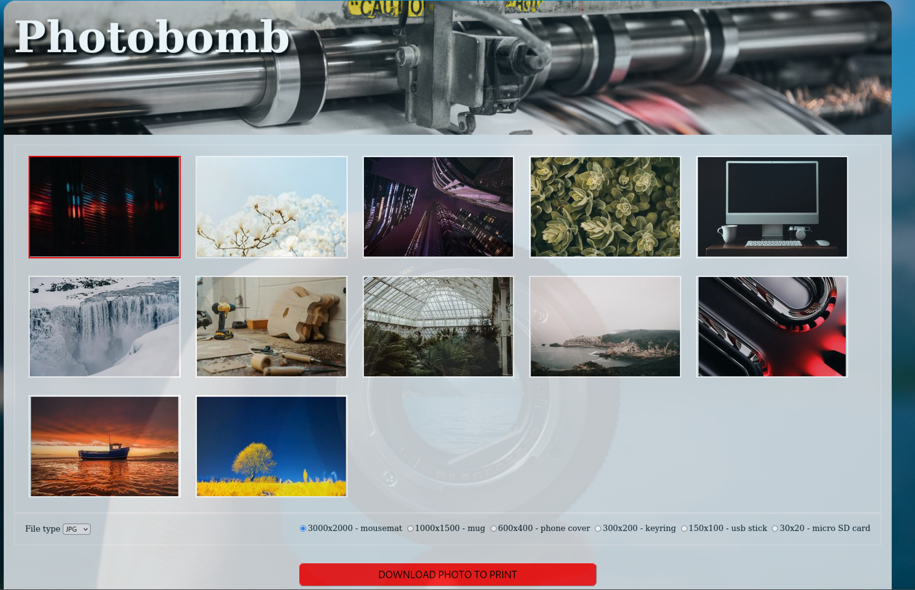 Photobomb is an easy Linux machine where plaintext credentials are used to access an internal web application with a Download functionality that is vulnerable to a blind command injection. Once a foothold as the machine's main user is established, a poorly configured shell script that references binaries without their full paths is leveraged to obtain escalated privileges, as it can be ran with `sudo
